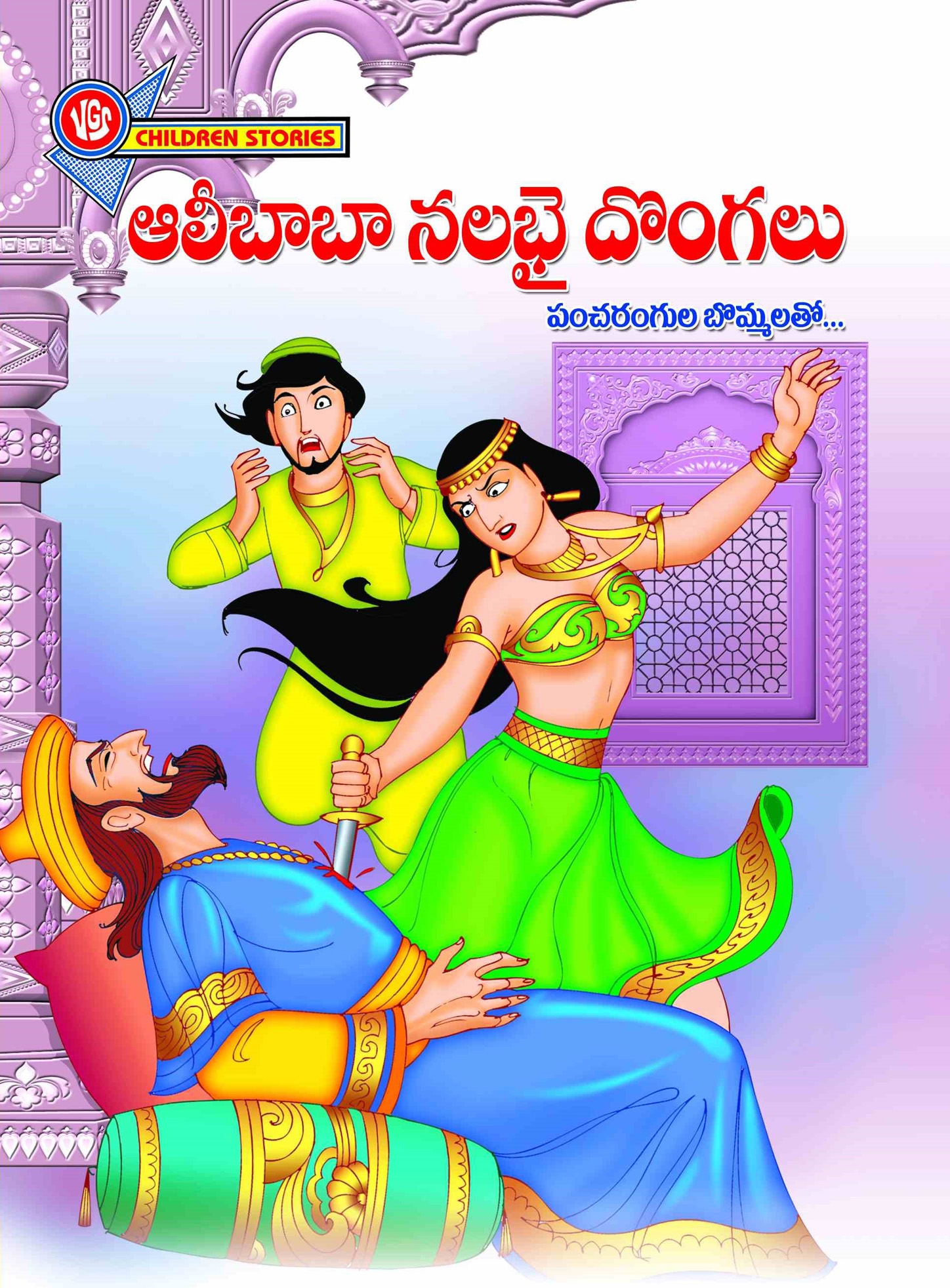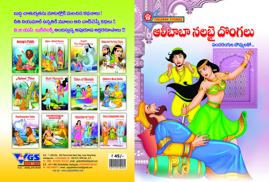 Alibaba and the Forty Thieves this book is in Telugu, tells the Classic folk tale of a poor woodcutter who discovers a secret thieves den filled with treasure after learning the magical phrase “Open sesame.”