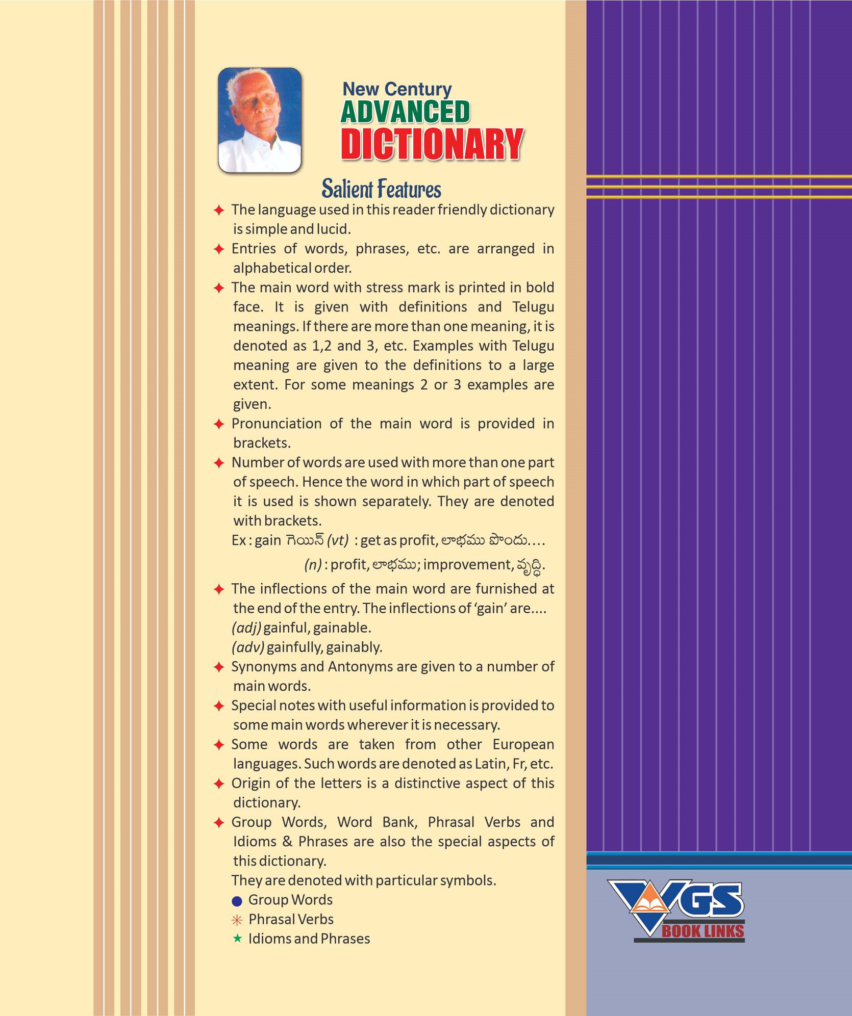 New Century Advanced Dictionary is a English – Englsih – telugu Book