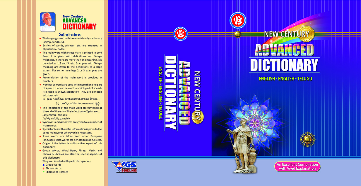 New Century Advanced Dictionary Book this advanced trilingual reference guide provides clear meanings and vivid explations for english words in both English and Telugu. It’s a high-quality compilation to help the Readers.