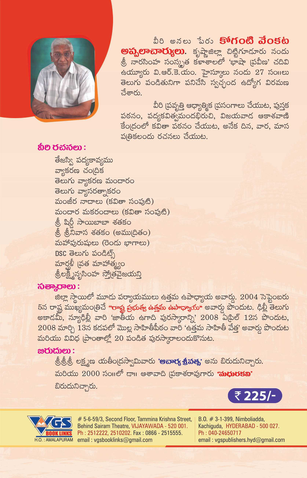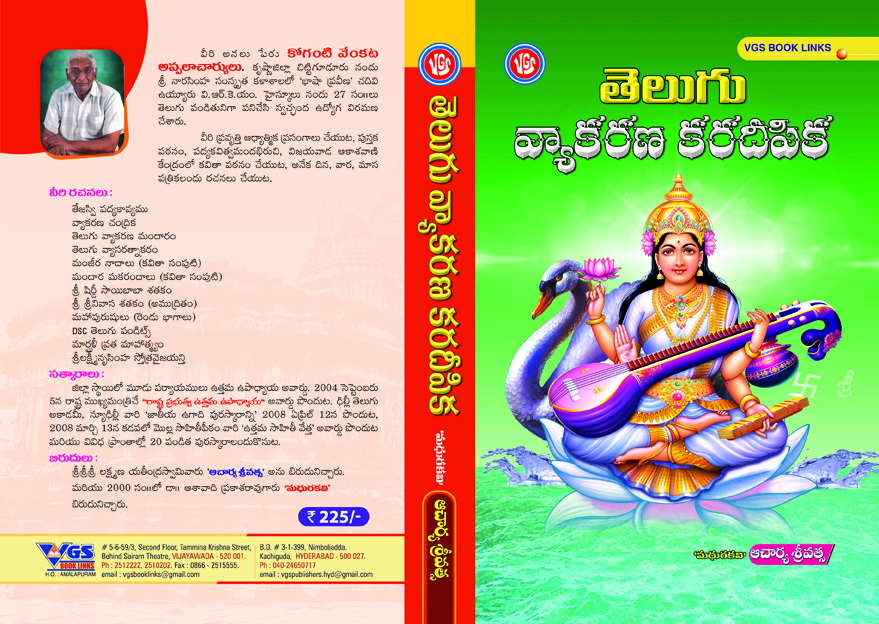 Telugu Vyakarana Karadipika is an educational handbook designed to provide a clear and detailed understanding of Telugu Grammer for studentys and language learners. It was complied by an Award-winning teacher and scholar.