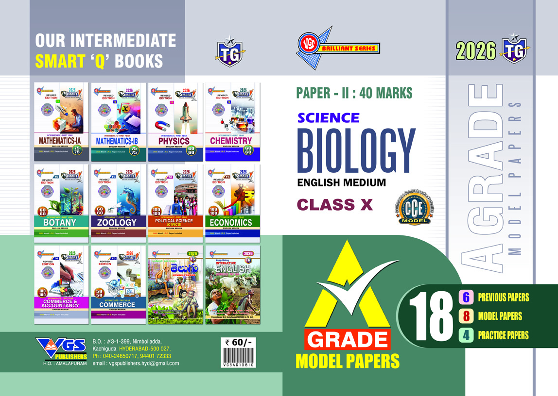 TG 10th Class A GRADE MODEL PAPERS BIOLOGY Paper 2 English Medium 2026 is a specially designed study guide prepared in line with the latest Telangana syllabus and examination guidelines. It provides a structured and exam-focused approach to help Class 10th students master the Science subject with clarity and confidence.