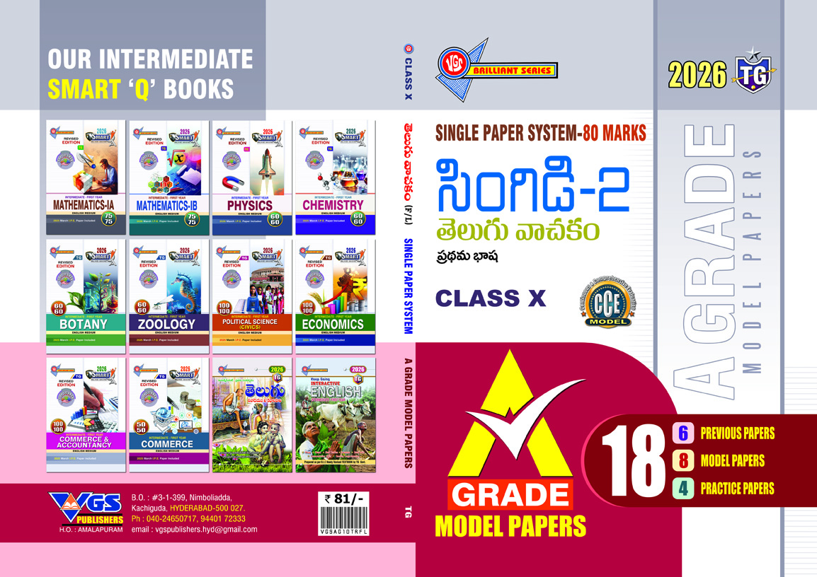 TG 10th Class A GRADE MODEL PAPERS SINGIDI-2 Telugu First Language 2026 is a specially designed study guide prepared in line with the latest Telangana syllabus and examination guidelines. It provides a structured and exam-focused approach to help Class 10th students master the Telugu subject with clarity and confidence.