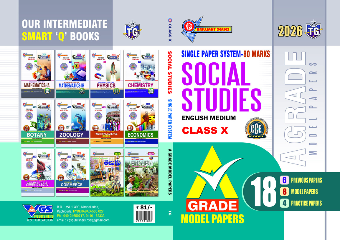 TG 10th Class A GRADE MODEL PAPERS Social Studies English Medium 2026 is a specially designed study guide prepared in line with the latest Telangana syllabus and examination guidelines. It provides a structured and exam-focused approach to help Class 10th students master the Social Studies subject with clarity and confidence.