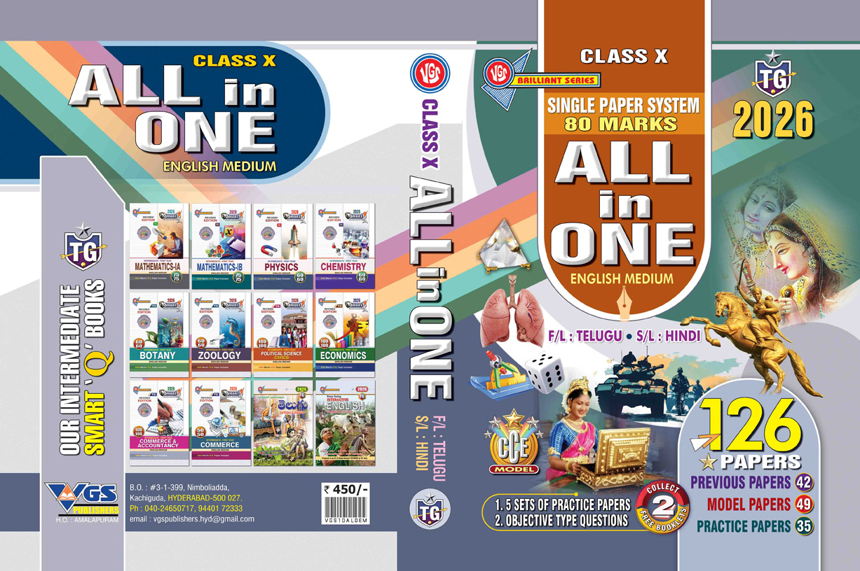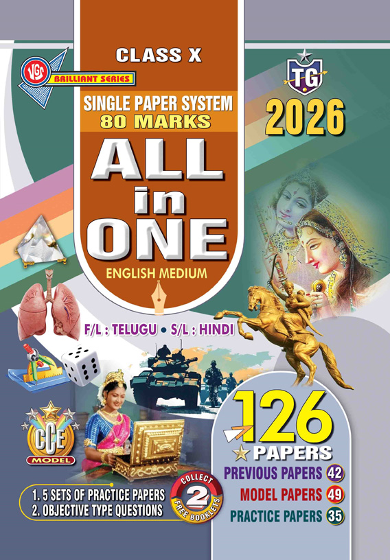 TG 10th Class ALL IN ONE Telugu Medium (FL- TELUGU, SL-HINDI) 2026 is a specially designed study guide prepared in line with the latest Telangana syllabus and examination guidelines. It provides a structured and exam-focused approach to help Class 10th students master the All subjects with clarity and confidence.