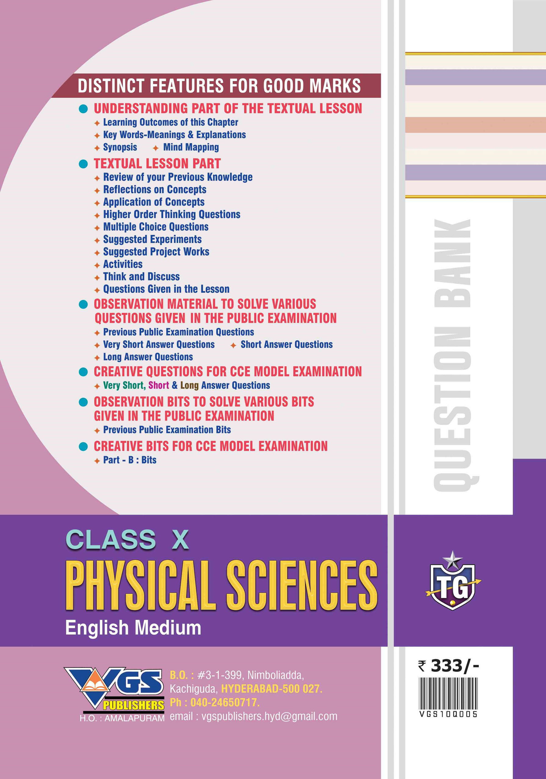 The TG Class X Physical Science (English Medium) Question Bank 2026 is a well-structured and exam-focused guide designed in accordance with the latest Telangana SSC syllabus and examination guidelines. It provides complete coverage of all chapters in Physical Science, enabling Class 10 students to prepare thoroughly and perform with confidence in their 2026 Board Exams.