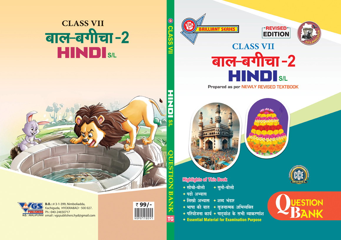 TG 7th Class Hindi Bal Bagicha – 2 (Second Language) Question Bank-2026 is a comprehensive and student-friendly resource designed as per the latest Telangana State syllabus and exam guidelines. This book provides chapter-wise coverage of all topics from Hindi_Bal Bagicha_2, ensuring complete preparation for the Class 7th Telugu examination.