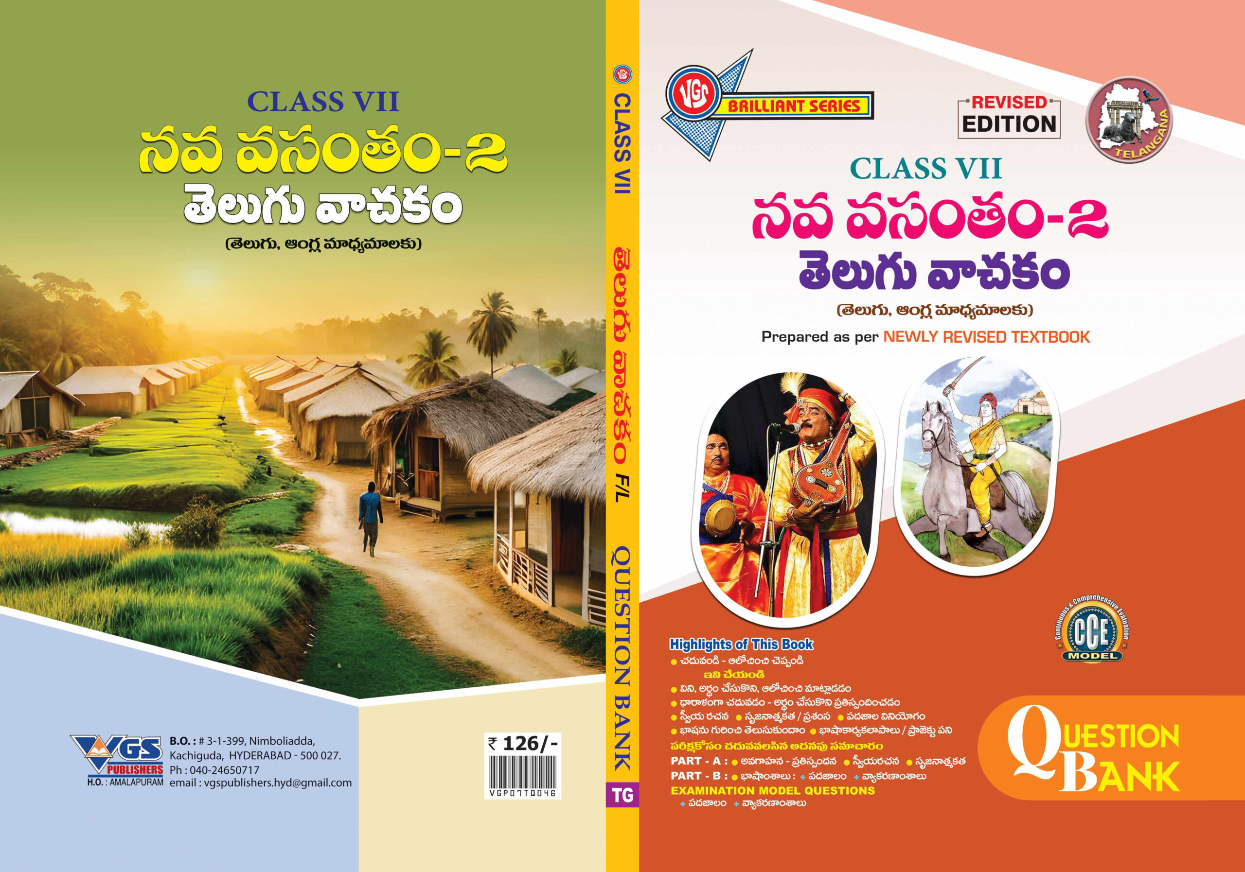 VGS Publishers - Products - TG 7th Class Telugu Nava Vasantham-2 ( First Language) Question Bank-2026