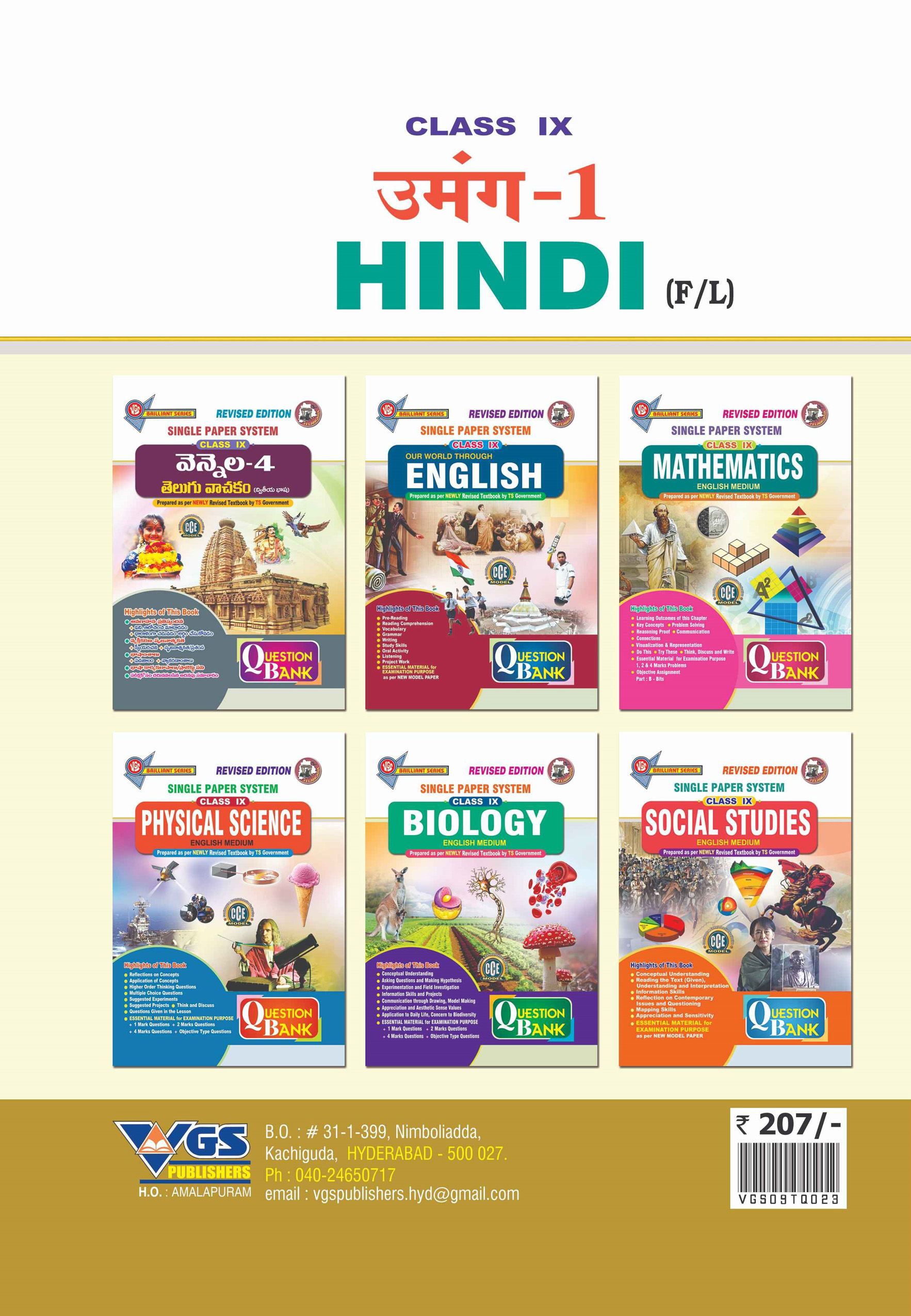 The TG 9th Class Hindi _Amang_1 (First Language) Question Bank-2026 is a specially designed study guide prepared in line with the latest Telangana syllabus and examination guidelines. It provides a structured and exam-focused approach to help Class 9th students master the Hindi subject with clarity and confidence.