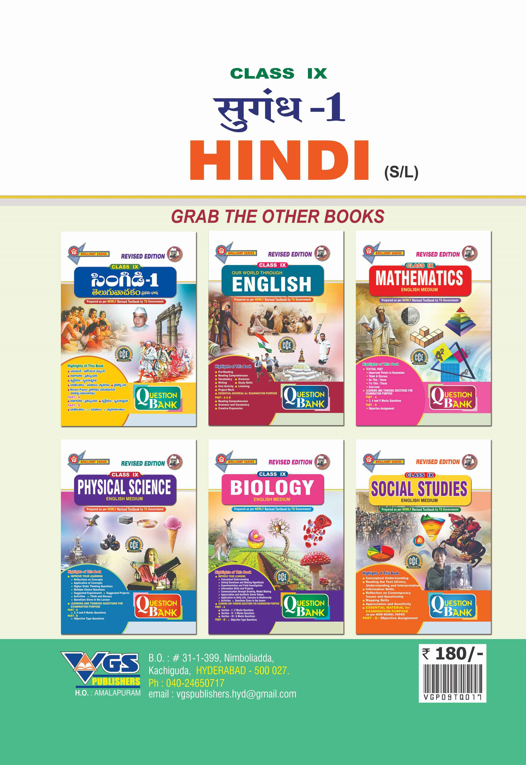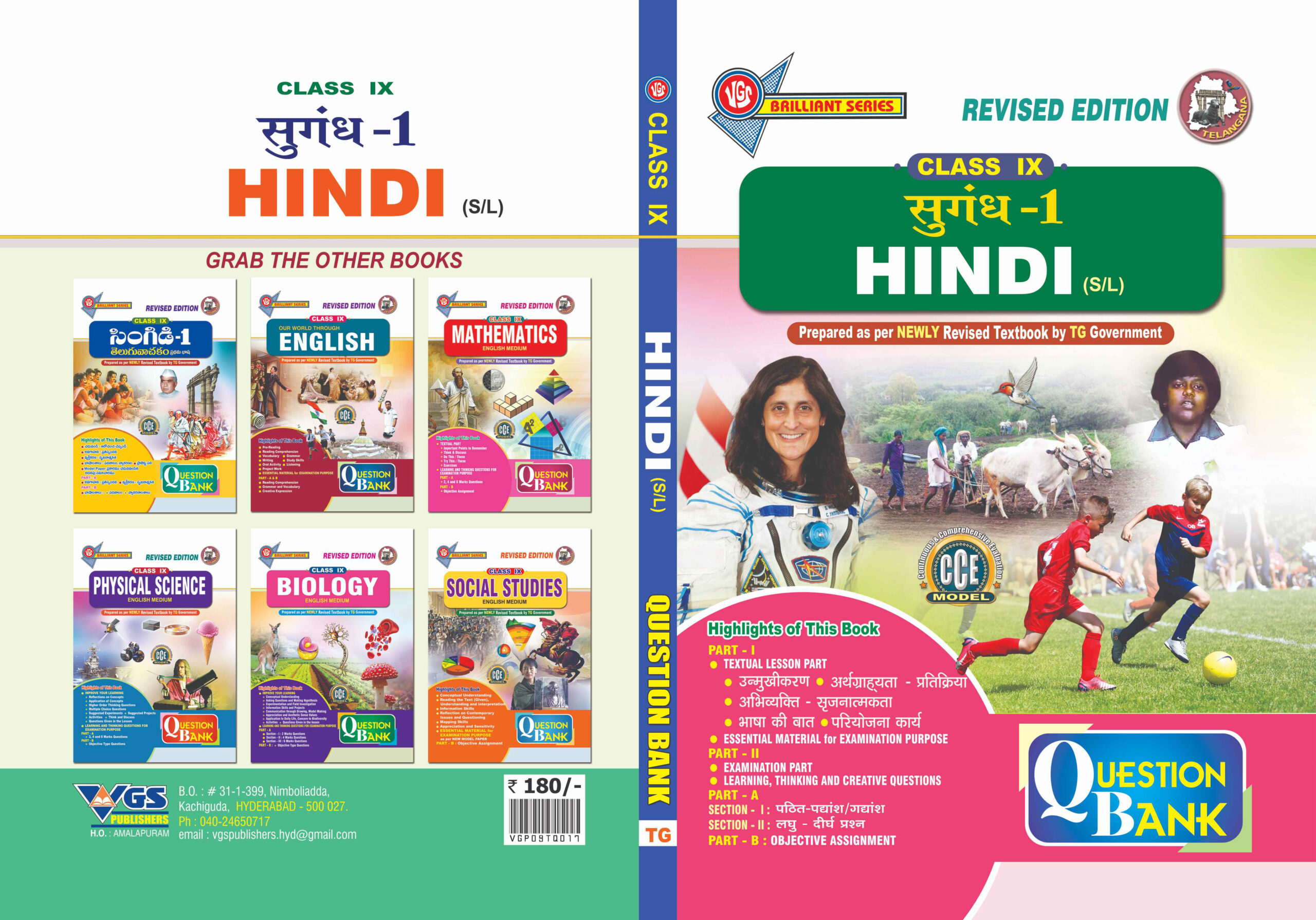 The TG 9th Class Hindi _Sugandh_1 (Second Language) Question Bank-2026 is a comprehensive and student-friendly resource designed as per the latest Telangana State syllabus and exam guidelines. This book provides chapter-wise coverage of all topics from Sugandh-1, ensuring complete preparation for the Class 9th Telugu examination.