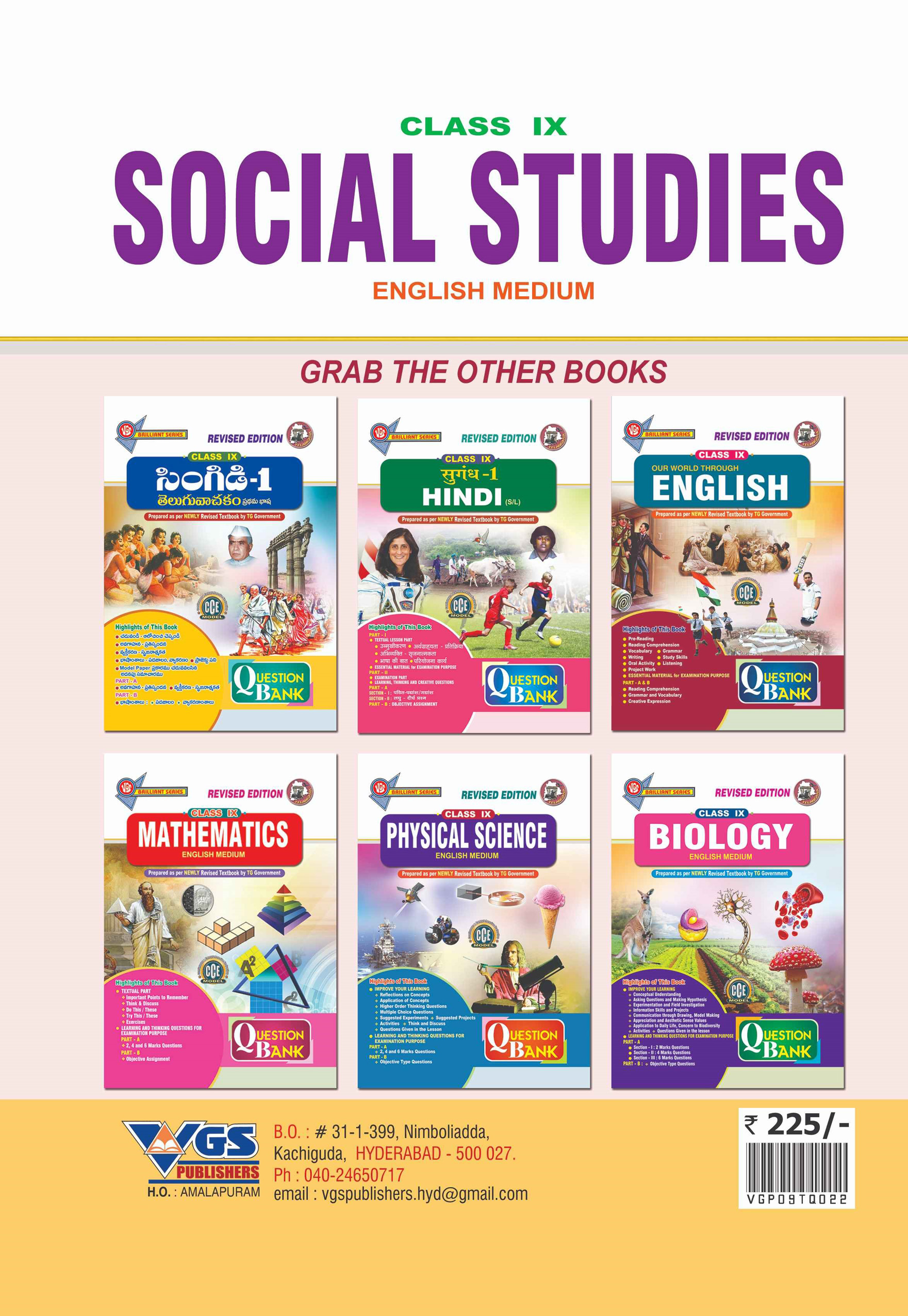 The TG 9th Class Social Studies English Medium Question Bank-2026 is a well-structured and exam-focused guide designed in accordance with the latest Telangana syllabus and examination guidelines. It provides complete coverage of all chapters in 9th Class Social Studies, enabling Class 9 students to prepare thoroughly and perform with confidence in their 2026 Board Exams.